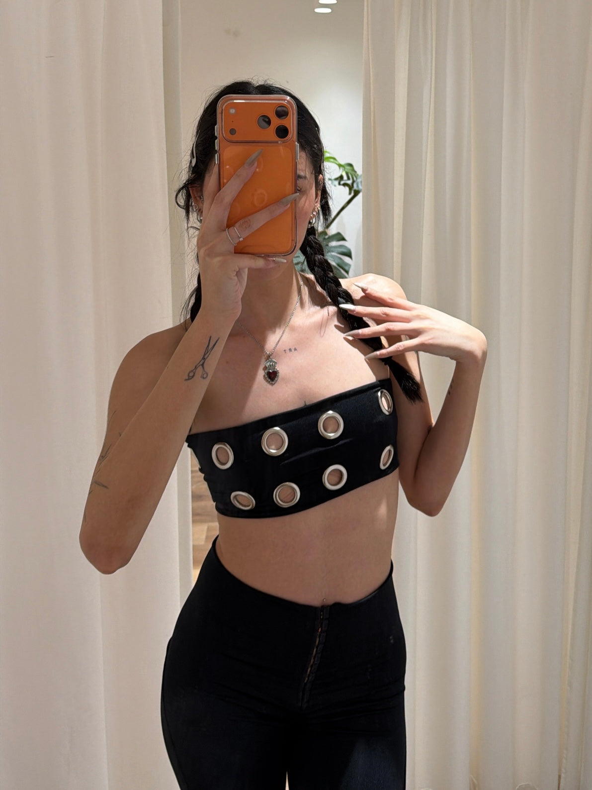 Crop top femenino diseñado en Lycra poliéster. Textura suave, forrado en la misma lycra, ideal para todo tipo de busto.