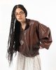 Chaqueta oversized en cuerina negra con cierre frontal y cuello alto. Su silueta amplia y estructura marcada la convierten en una prenda statement que eleva cualquier outfit. Tiene bolsillos laterales y detalles en costuras diagonales que le aportan un toque futurista. Perfecta para lograr un look edgy, nocturno y poderoso.