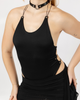 Una falda que mezcla actitud y fluidez en una silueta llamativa y versátil. El diseño mini se complementa con una cola lateral en malla traslúcida que aporta movimiento y contraste. Su pretina ancha fruncida estiliza la figura y permite un ajuste cómodo. Confeccionada completamente en malla negra, con excelente elongación y caída liviana.